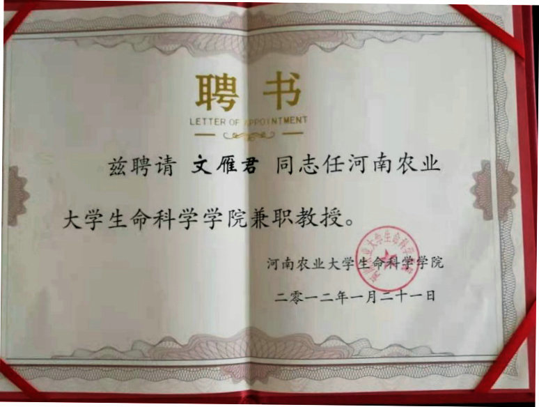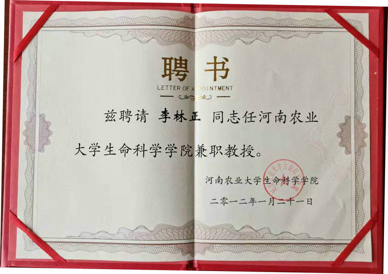 河南農業大學生命科學學院聘請文雁君、李林正為兼職教授