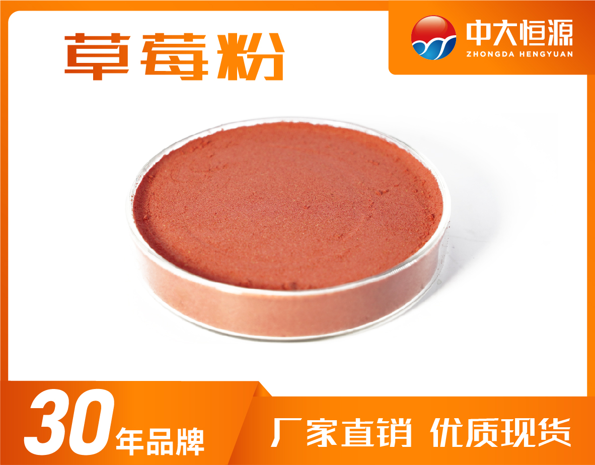 草莓粉為由新鮮草莓經過干燥后加工而成,保持食品組織結構、營養成分和風味物質基本不變,特別是生理活性成分保留率,接近新鮮水果。